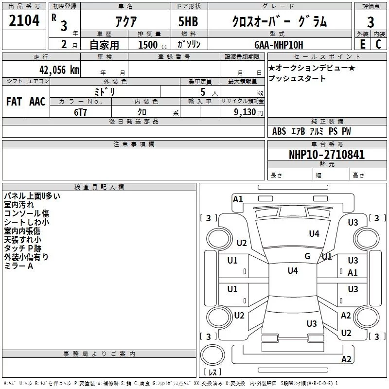 Toyota AQUA с аукциона Японии TAA Hyogo лот № 2104