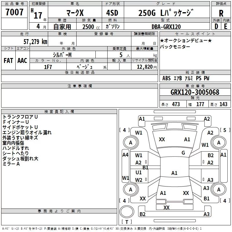 Toyota MARK X с аукциона Японии TAA Hyogo лот № 7007
