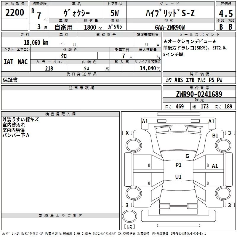 Toyota VOXY с аукциона Японии TAA Hyogo лот № 2200