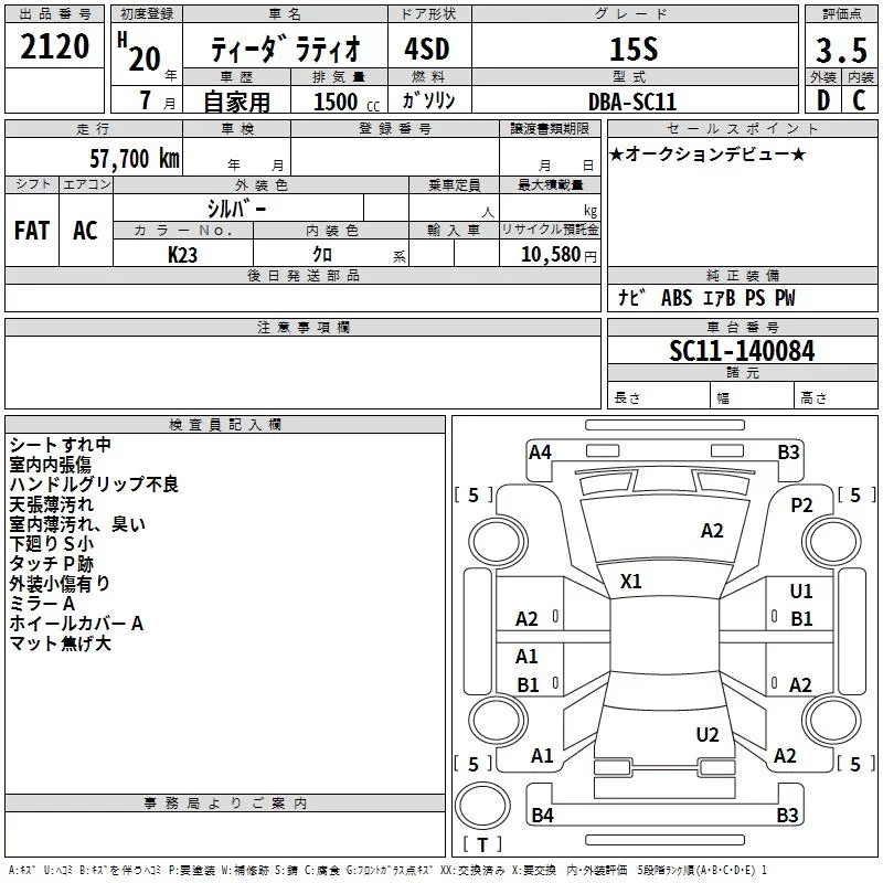 Nissan TIIDA LATIO с аукциона Японии TAA Hyogo лот № 2120