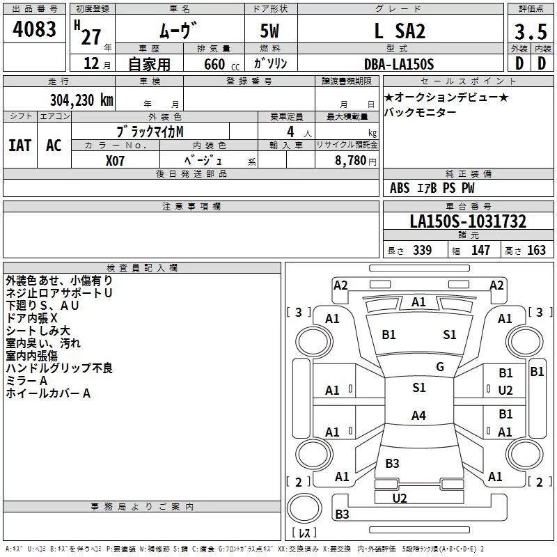 Daihatsu MOVE с аукциона Японии TAA Hyogo лот № 4083