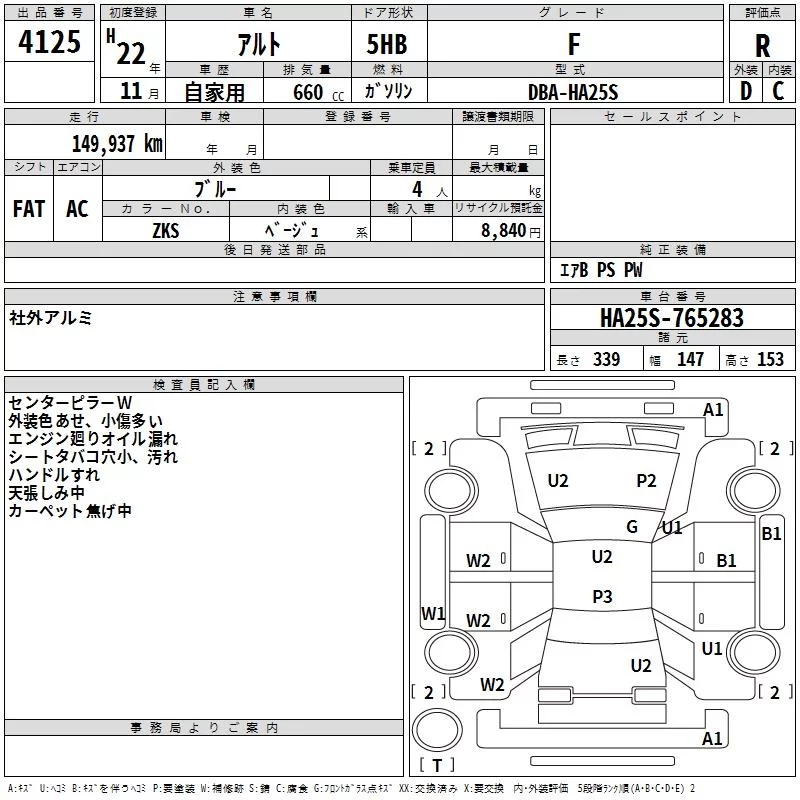 Suzuki ALTO с аукциона Японии TAA Hyogo лот № 4125