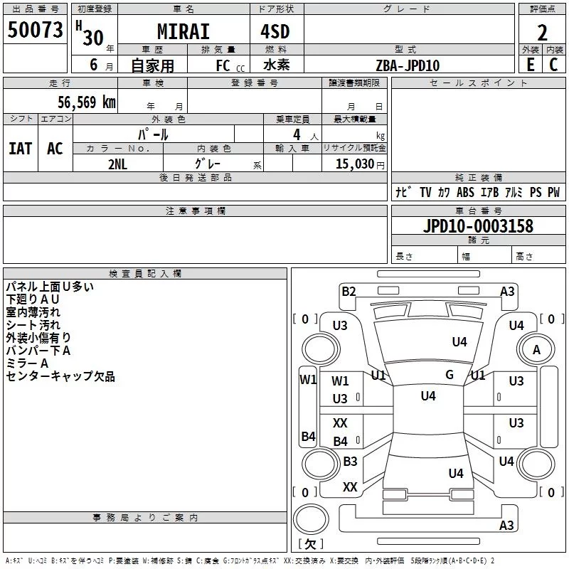 Toyota MIRAI с аукциона Японии TAA Hyogo лот № 50073