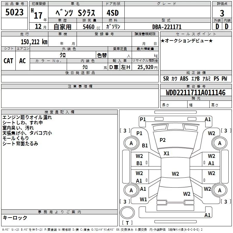 Mercedes-Benz S CLASS с аукциона Японии TAA Hyogo лот № 5023