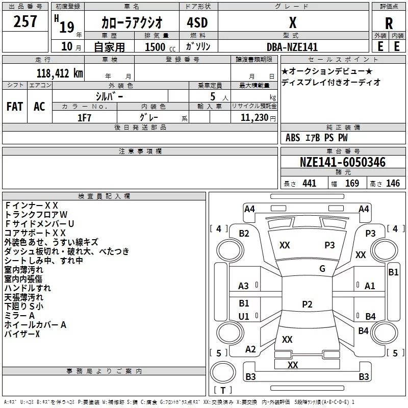 Toyota COROLLA AXIO с аукциона Японии TAA Hyogo лот № 257