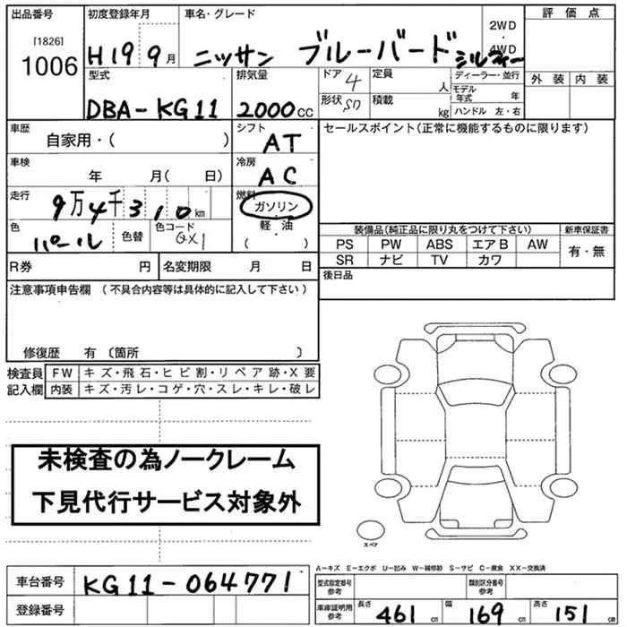 Nissan SYLPHY с аукциона Японии JU Nara лот № 1006