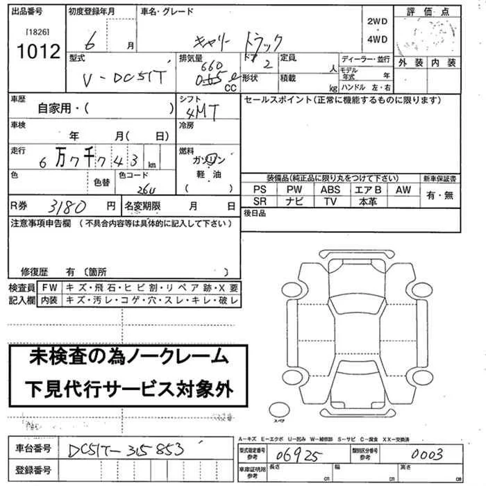 Suzuki CARRY TRUCK с аукциона Японии JU Nara лот № 1012