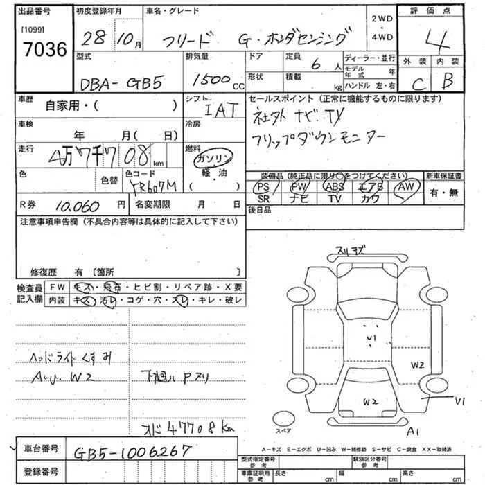 Honda FREED с аукциона Японии JU Yamagata лот № 7036