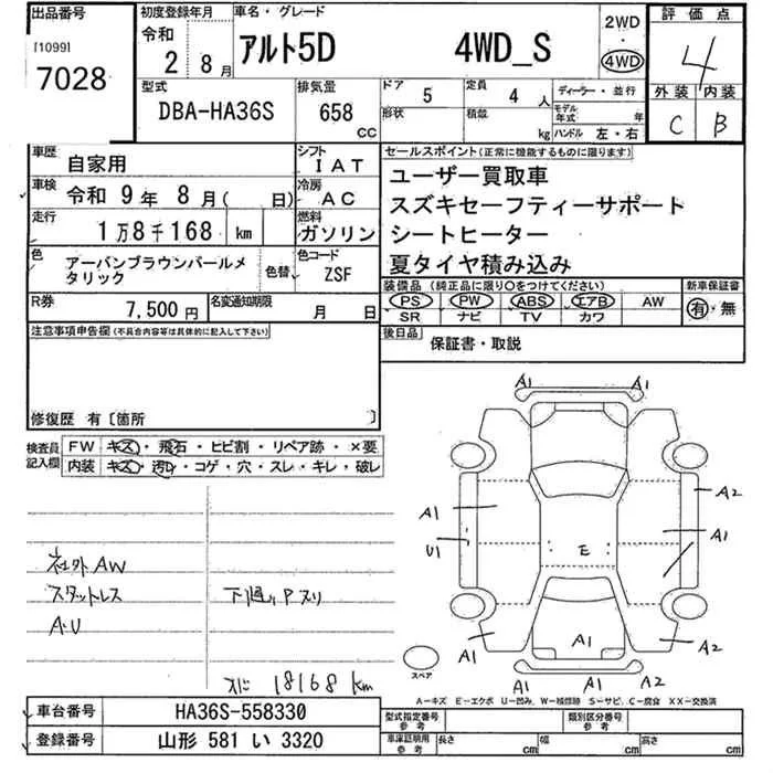Suzuki ALTO с аукциона Японии JU Yamagata лот № 7028