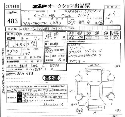 Mercedes-Benz E CLASS с аукциона Японии ZIP Tokyo лот № 483