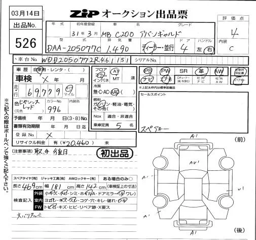 Mercedes-Benz C CLASS с аукциона Японии ZIP Tokyo лот № 526