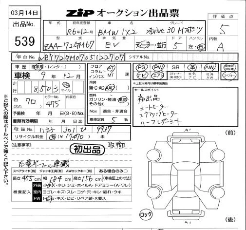 BMW IX2 с аукциона Японии ZIP Tokyo лот № 539