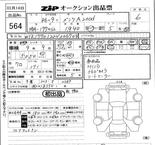Mercedes-Benz A CLASS с аукциона Японии ZIP Tokyo лот № 564