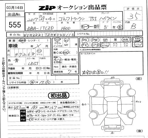 Volkswagen GOLF TOURAN с аукциона Японии ZIP Tokyo лот № 555