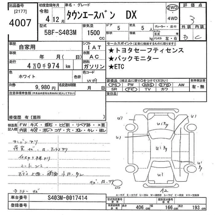 Toyota TOWN ACE VAN с аукциона Японии JU Tokyo лот № 4007
