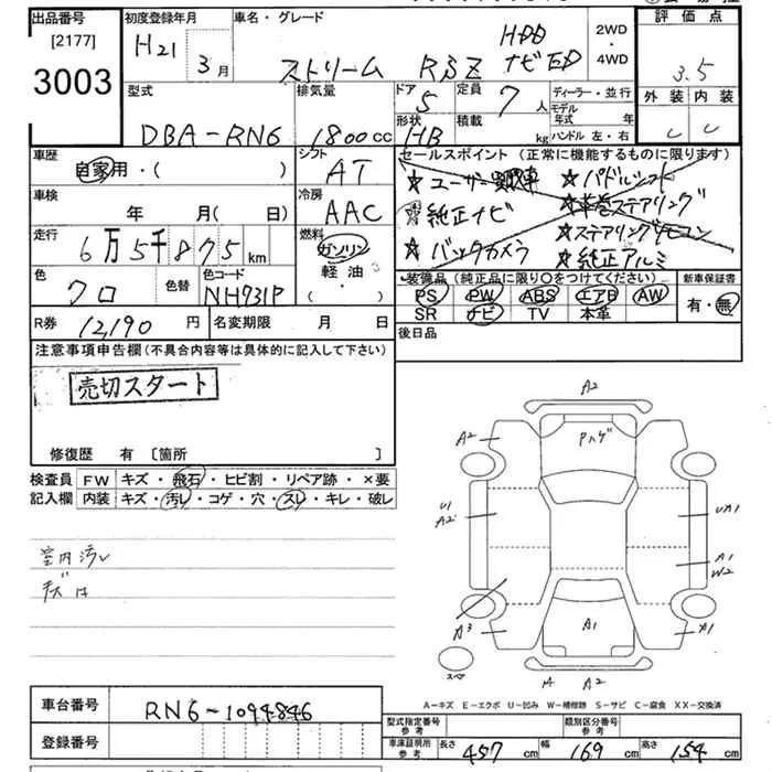 Honda STREAM с аукциона Японии JU Tokyo лот № 3003