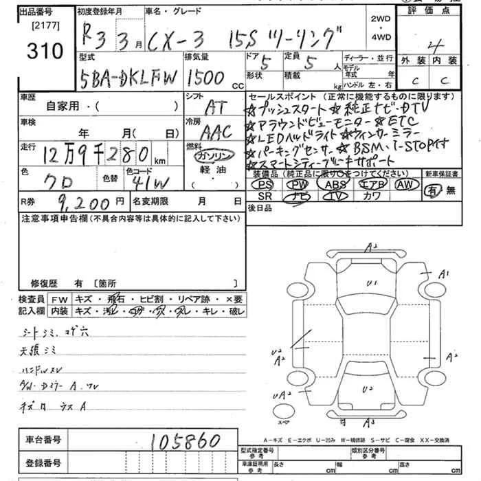 Mazda CX-3 с аукциона Японии JU Tokyo лот № 310