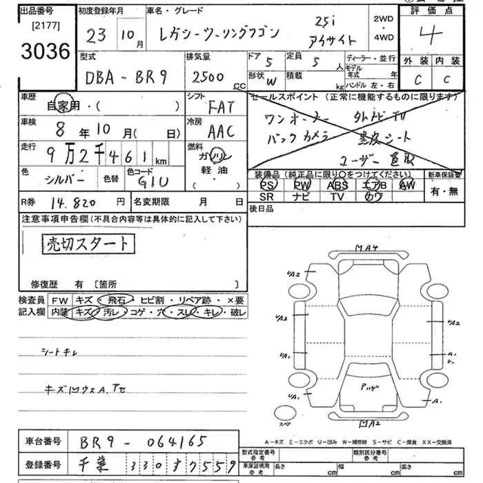 Subaru LEGACY с аукциона Японии JU Tokyo лот № 3036
