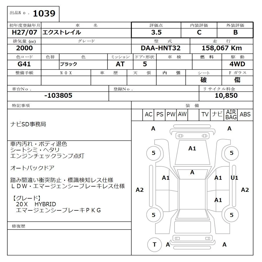 Nissan X-TRAIL с аукциона Японии NISSAN Osaka лот № 1039