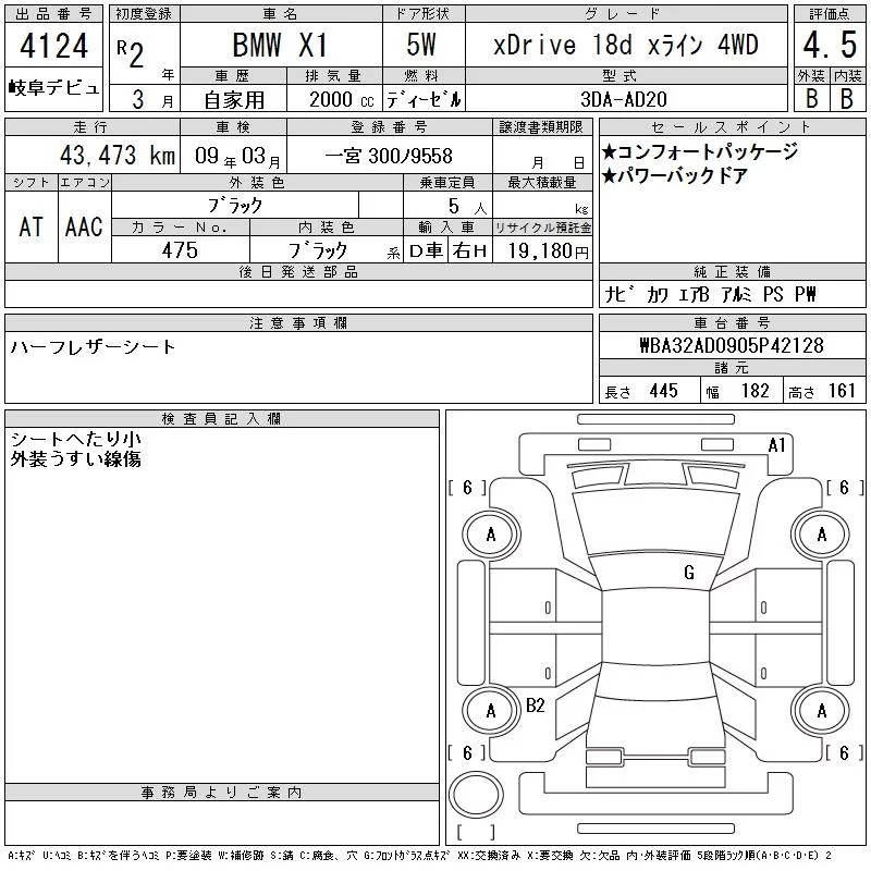 BMW X1 с аукциона Японии CAA Gifu лот № 4124