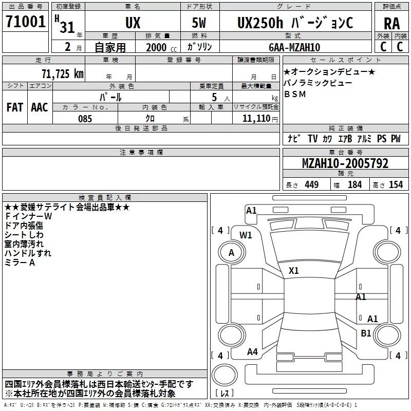 Lexus UX с аукциона Японии TAA Shikoku лот № 71001