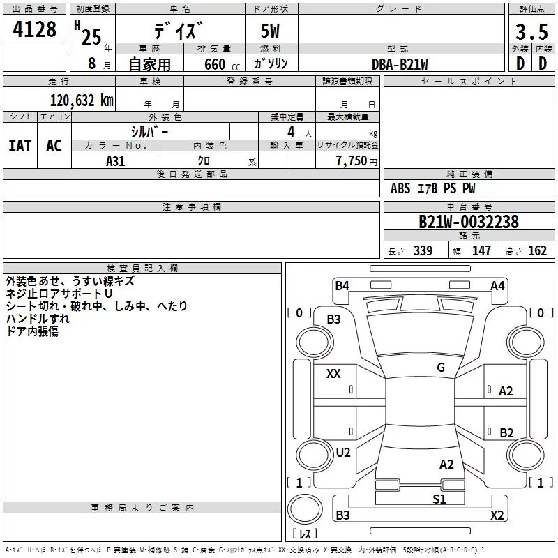 Nissan DAYZ с аукциона Японии TAA Shikoku лот № 4128