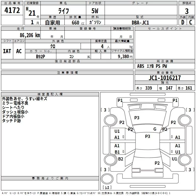 Honda LIFE с аукциона Японии TAA Shikoku лот № 4172