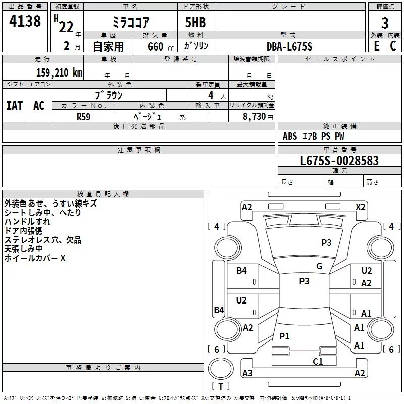 Daihatsu MIRA с аукциона Японии TAA Shikoku лот № 4138