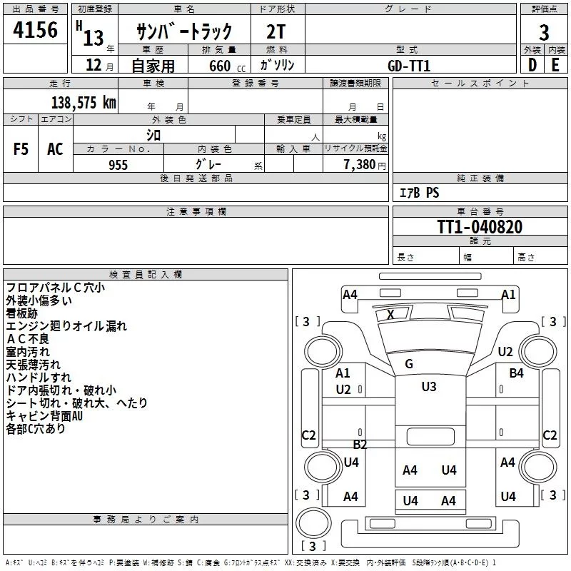 Subaru SAMBAR с аукциона Японии TAA Shikoku лот № 4156