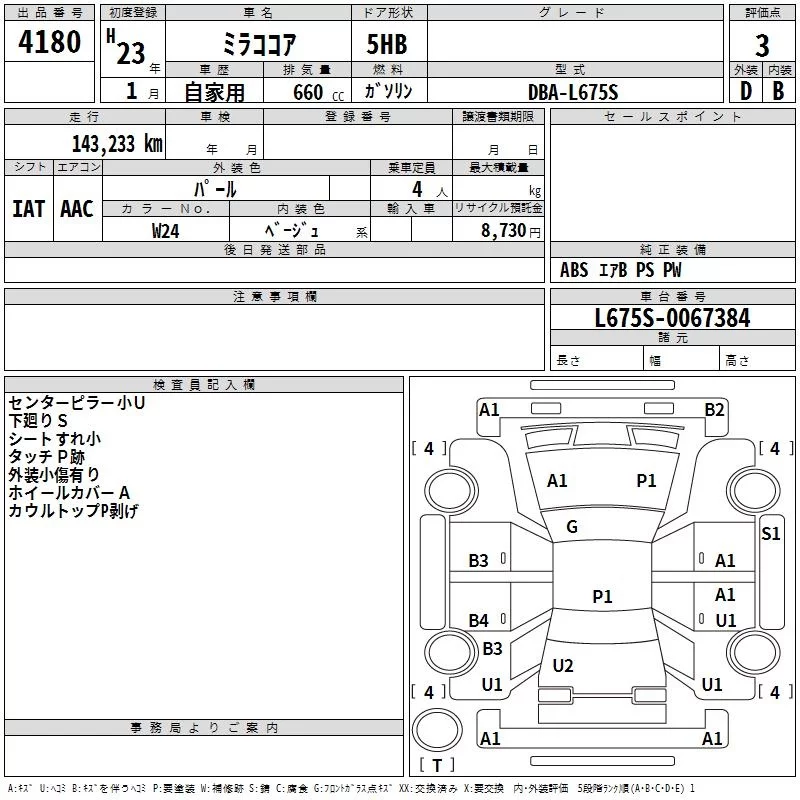 Daihatsu MIRA с аукциона Японии TAA Shikoku лот № 4180