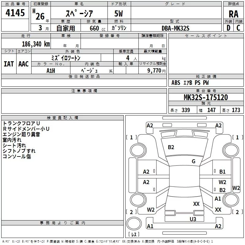 Suzuki SPACIA с аукциона Японии TAA Shikoku лот № 4145