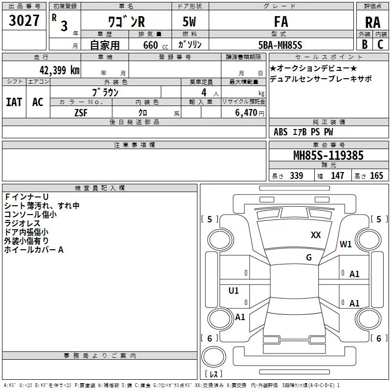 Suzuki WAGON R с аукциона Японии TAA Shikoku лот № 3027