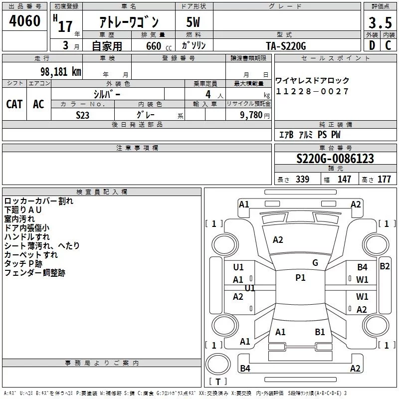 Daihatsu Atrai Wagon с аукциона Японии TAA Shikoku лот № 4060