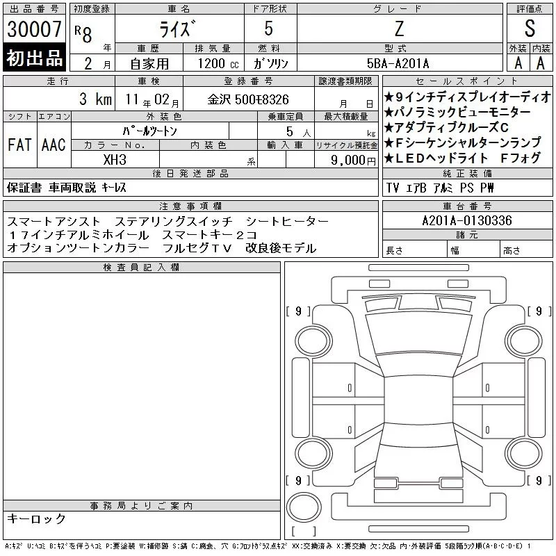 Toyota RAIZE с аукциона Японии CAA Gifu лот № 30007