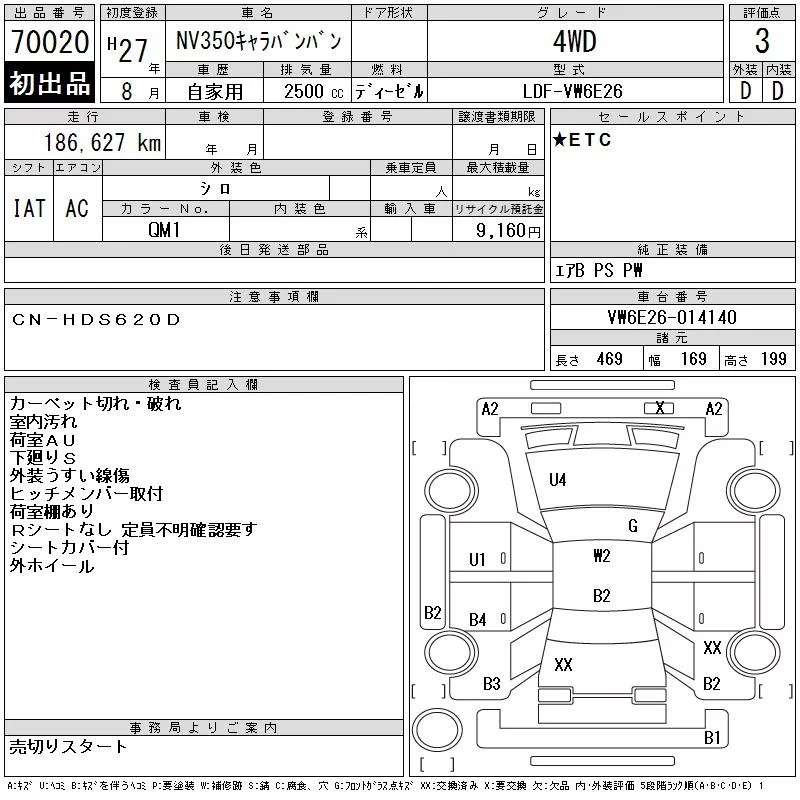 Nissan CARAVAN VAN с аукциона Японии CAA Gifu лот № 70020