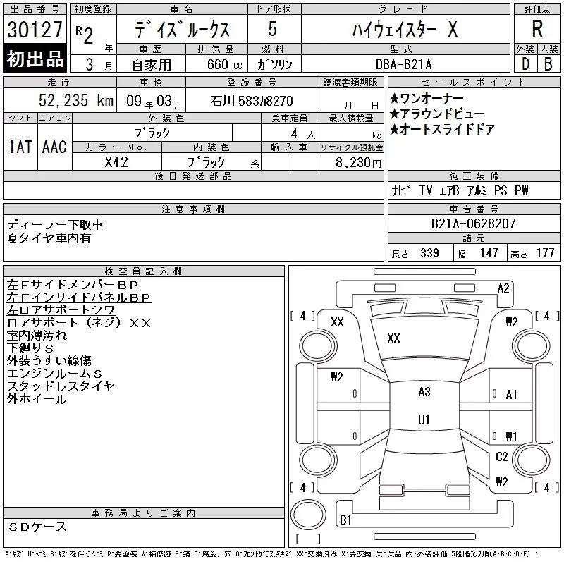 Nissan DAYZ ROOX с аукциона Японии CAA Gifu лот № 30127