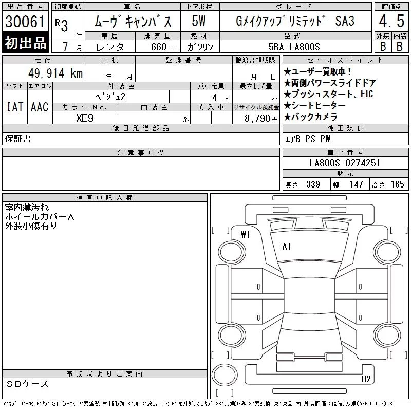 Daihatsu MOVE CANBUS с аукциона Японии CAA Gifu лот № 30061