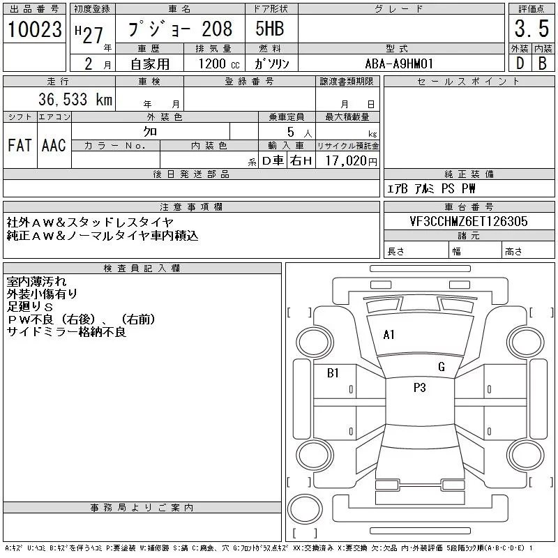 Peugeot 208 с аукциона Японии CAA Gifu лот № 10023