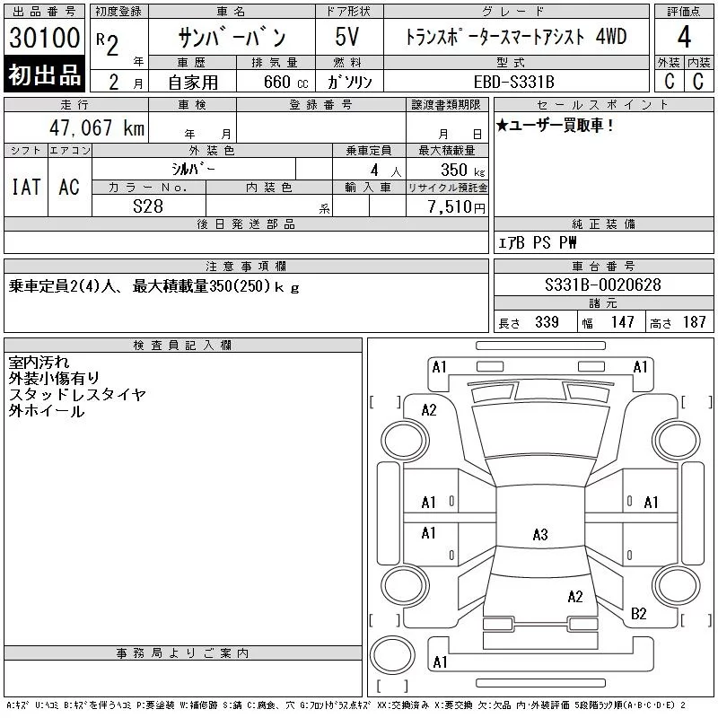 Subaru SAMBAR с аукциона Японии CAA Gifu лот № 30100