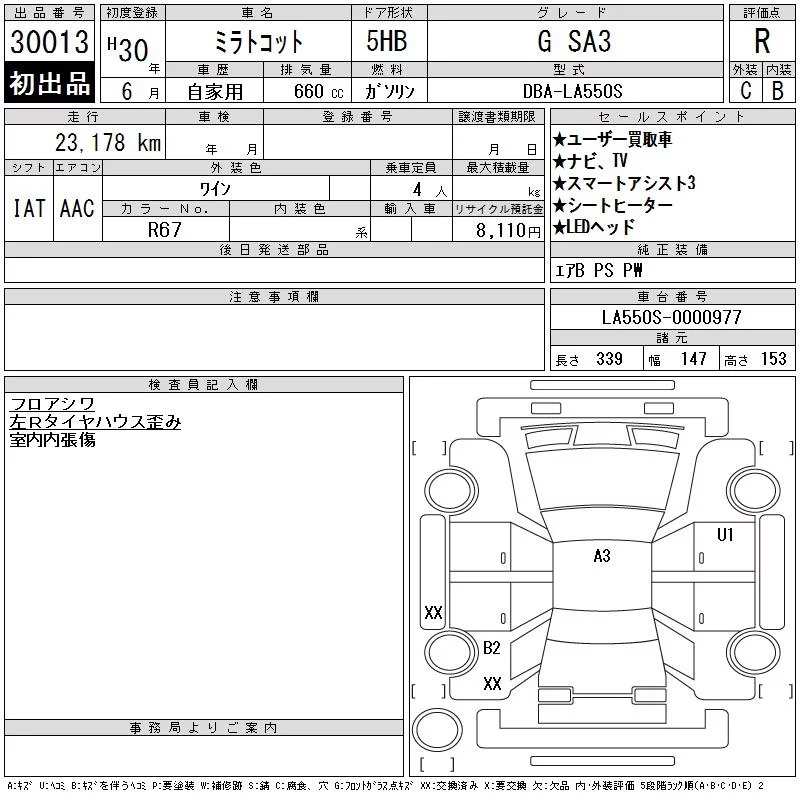 Daihatsu MIRA TOCOT с аукциона Японии CAA Gifu лот № 30013