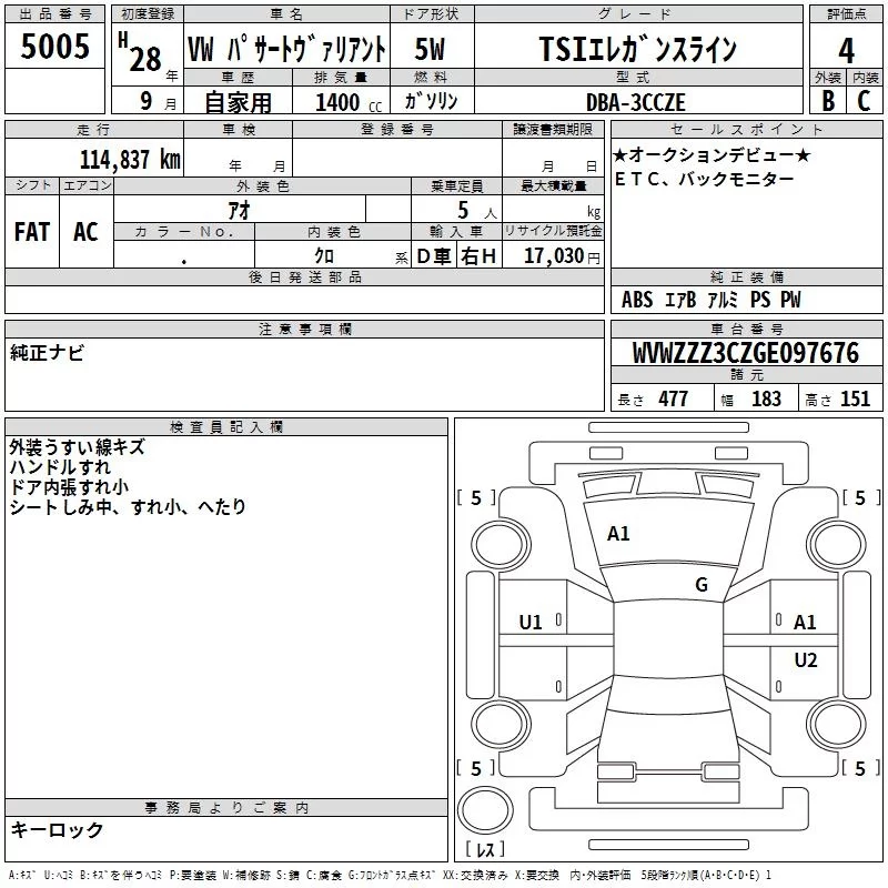 Volkswagen PASSAT VARIANT с аукциона Японии TAA Shikoku лот № 5005