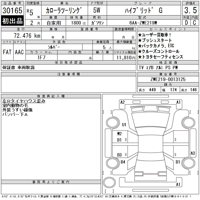 Toyota COROLLA TOURING с аукциона Японии CAA Gifu лот № 30165