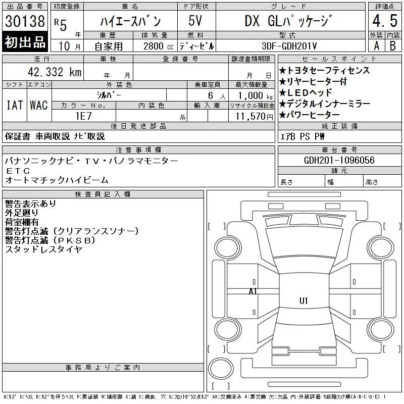 Toyota HIACE VAN с аукциона Японии CAA Gifu лот № 30138