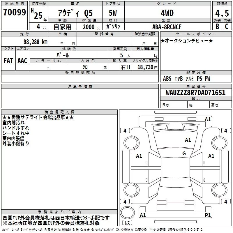 Audi Q5 с аукциона Японии TAA Shikoku лот № 70099