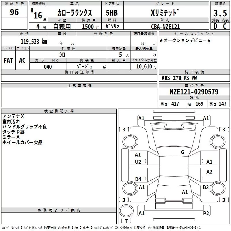 Toyota COROLLA RUNX с аукциона Японии TAA Shikoku лот № 96