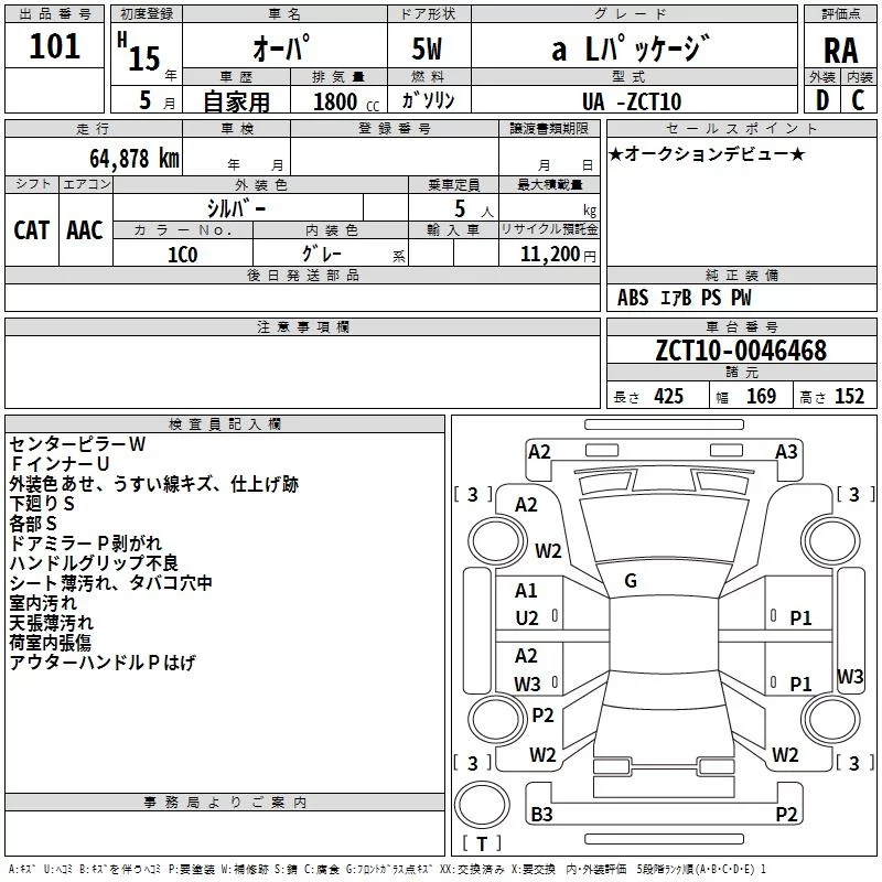 Toyota OPA с аукциона Японии TAA Shikoku лот № 101