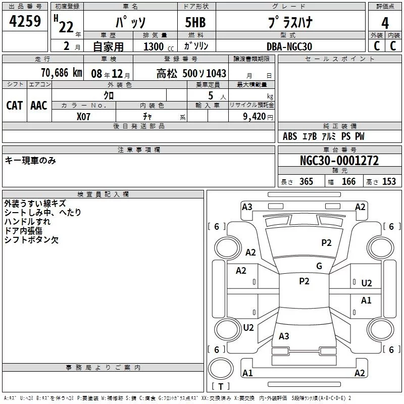 Toyota PASSO с аукциона Японии TAA Shikoku лот № 4259