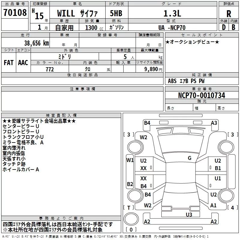 Toyota WILL с аукциона Японии TAA Shikoku лот № 70108