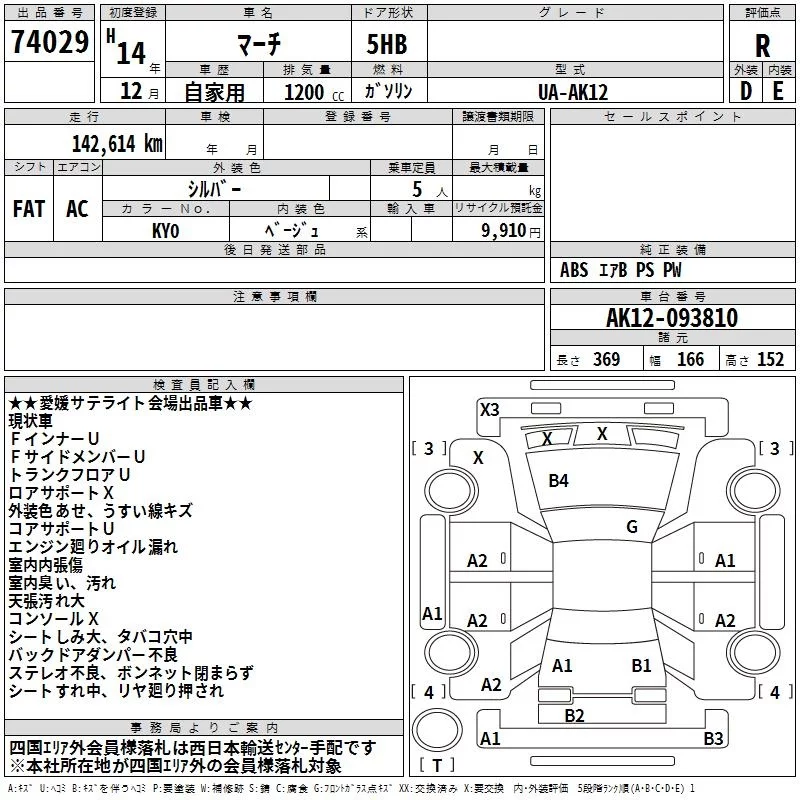 Nissan MARCH с аукциона Японии TAA Shikoku лот № 74029