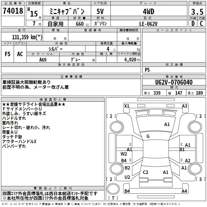 Mitsubishi MINICAB VAN с аукциона Японии TAA Shikoku лот № 74018
